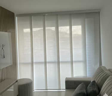 Diseño contemporáneo que combina elegancia y funcionalidad. Ideal para dividir ambientes o vestir grandes ventanales.